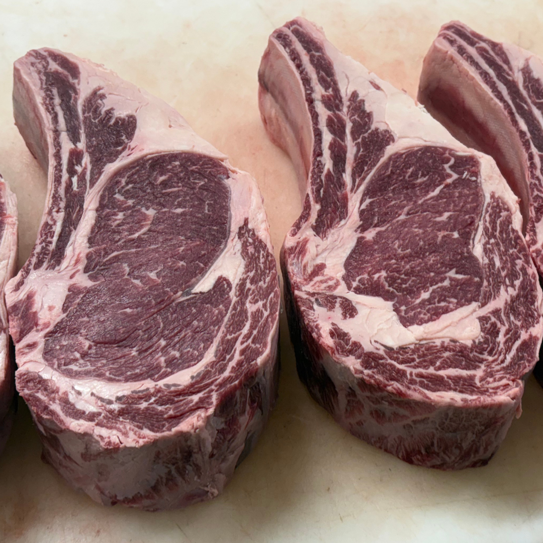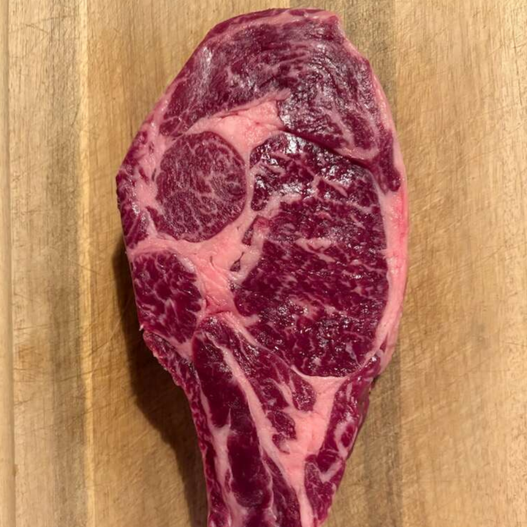 Denne Cote de Boeuf er tyktskåret, hvilket gør den ideel til stegning på pande efterfulgt af ovn – eller direkte på grillen. Fedtmarmoreringen og den naturlige fedtkant giver en fyldig smag, saftigt resultat og flot stegeskorpe.
